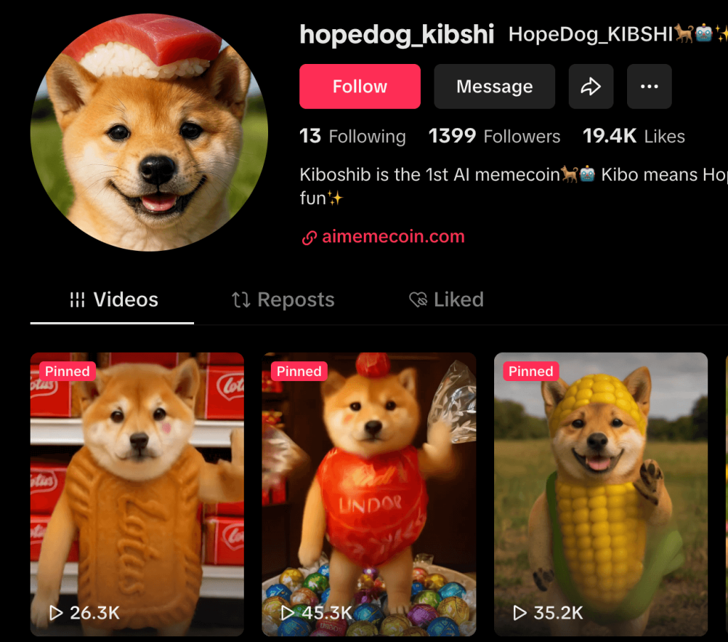 A community member created TikTok and Instagram account for crypto related shorts while bringing more eyes for KIBSHI coin in his videos explaining the narrative in simple words!